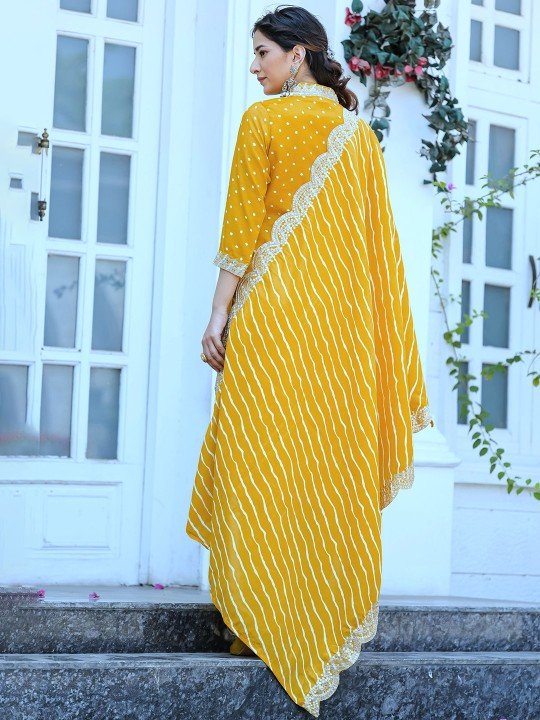 Bandhani Embroidered Regular Sequinned Kurta With Trouser & Dupatta