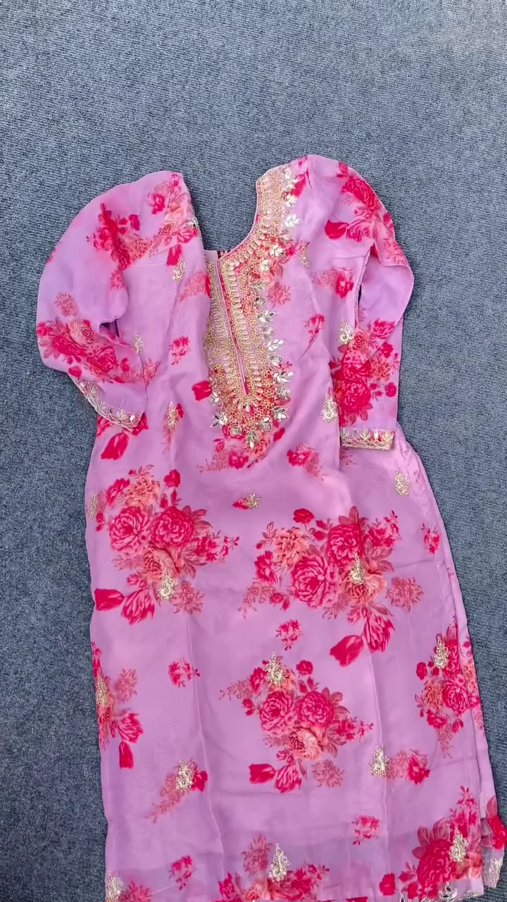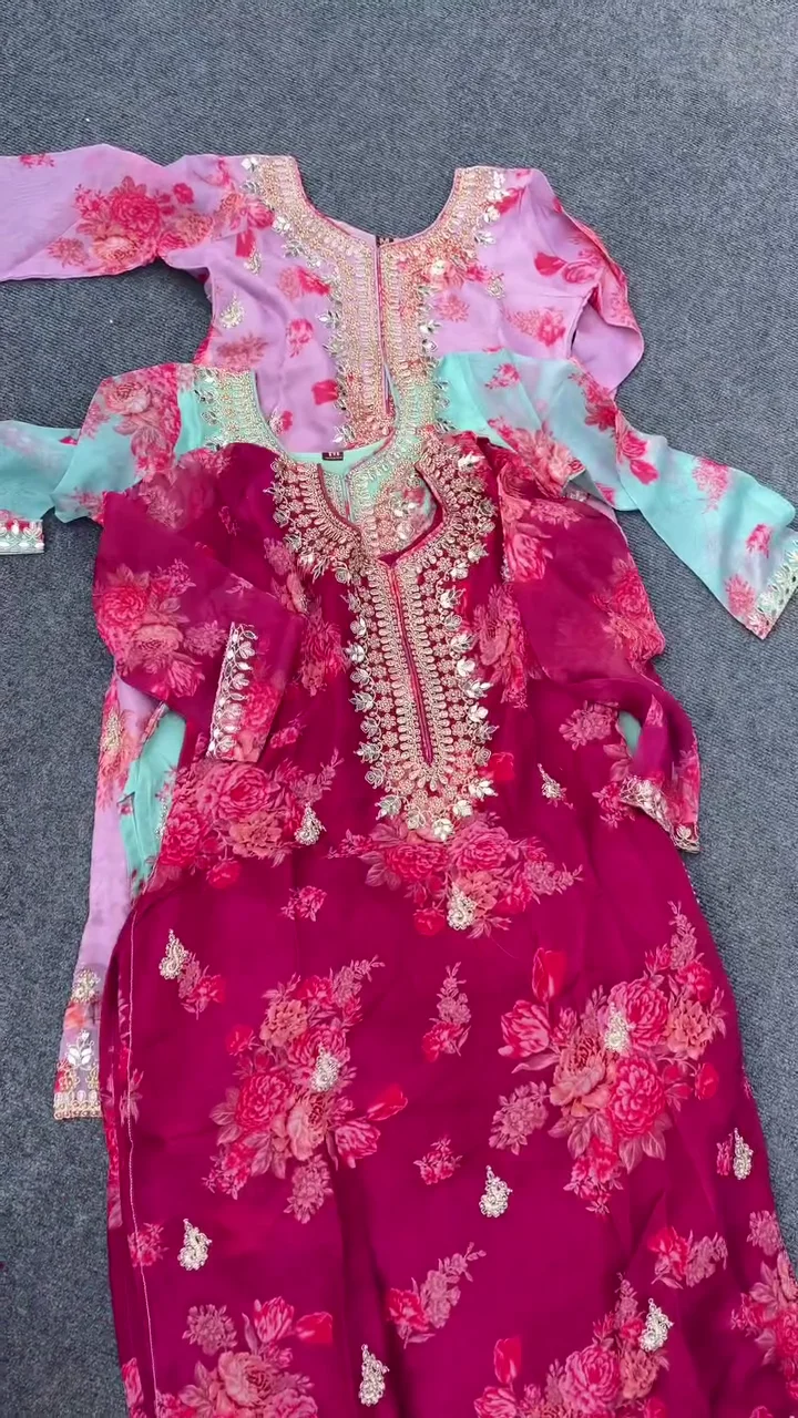 Elegant Designer Ensemble – A luxurious suit set beautifully crafted with intricate floral embroidery and delicate mirror work for a regal festive look.