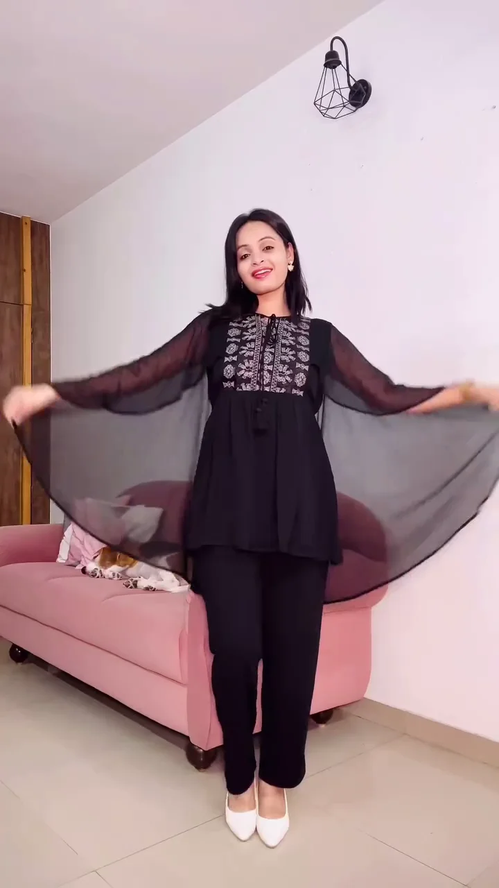 Stylish Black Embroidered Georgette Top with Flowing Cape Sleeves and Matching Pants – Elegant Party Wear Co-Ord Set for Women