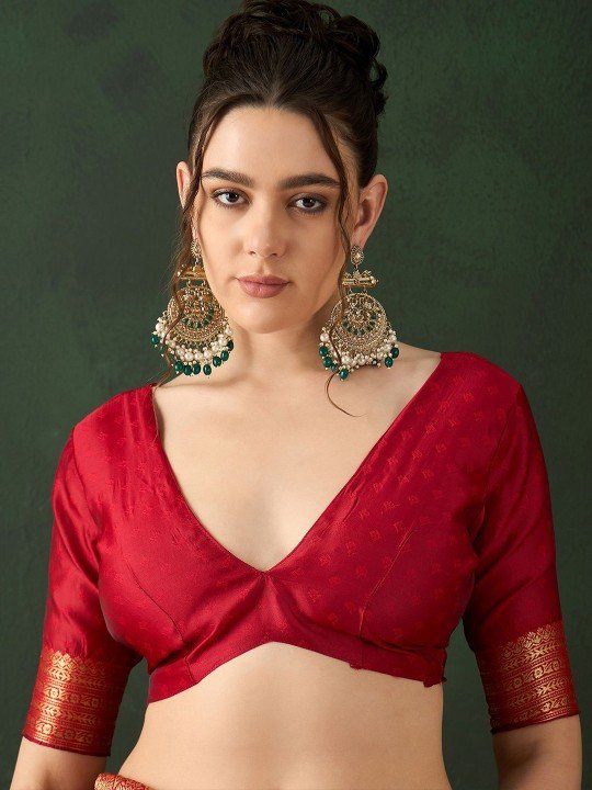 The blouse worn by the model could be for modelling purpose only, please check the image of the actual blouse piece