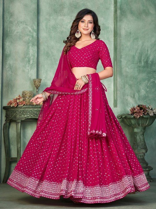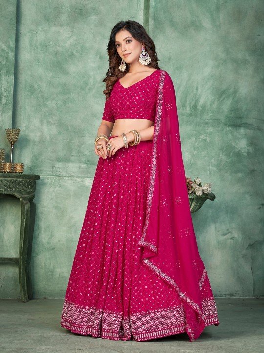 + Free ShippingPink woven design lehenga choli with dupatta, sequinned
